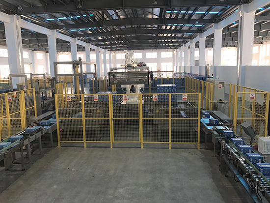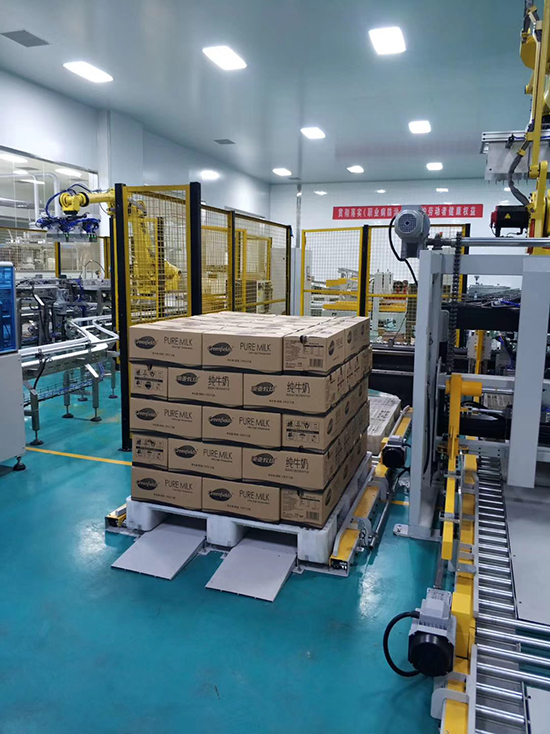 2、生产线中,机器人码垛可以灵活布局,可以同时码垛两条线或者多条线,是生产线末端进行码垛作业的理想之选。