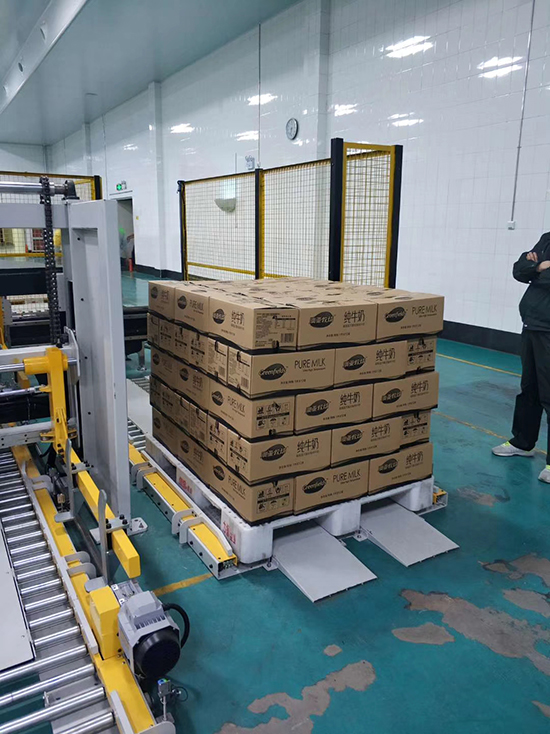 3、采用plc程序控制,及变频调速,纸箱输送、排序、堆垛,卸栈板、实垛输出等可自动化实现。