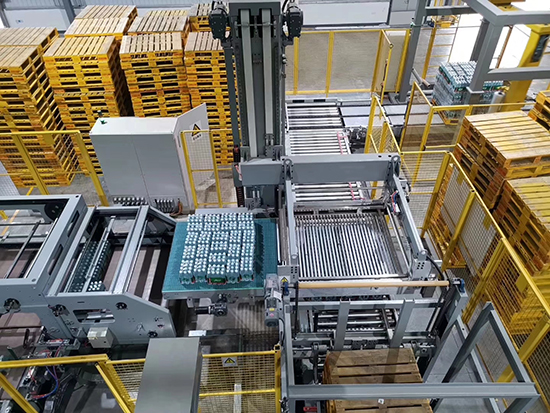 3、采用plc程序控制,及变频调速,纸箱输送、排序、堆垛,卸栈板、实垛输出等可自动化实现。